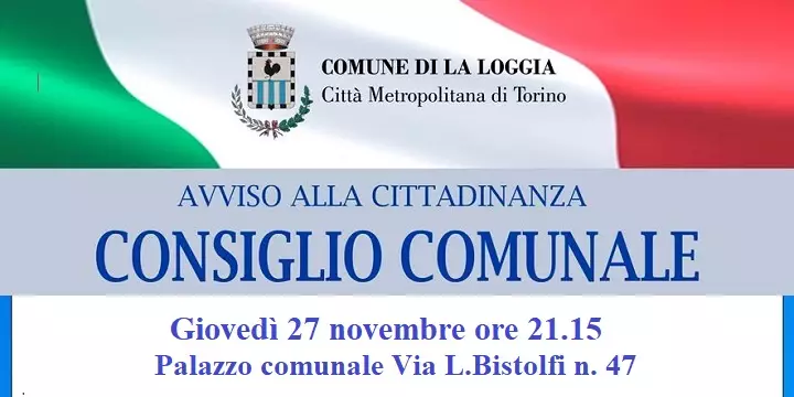 Descrizione Per le ore 21.15 del giorno 27 novembre 2025, presso la sede Comunale, il Consiglio Comunale è convocato in sessione straordinaria, di prima convocazione e in seduta pubblica.Palazzo Comunale Via L.Bistolfi n. 47 - Piano terra.