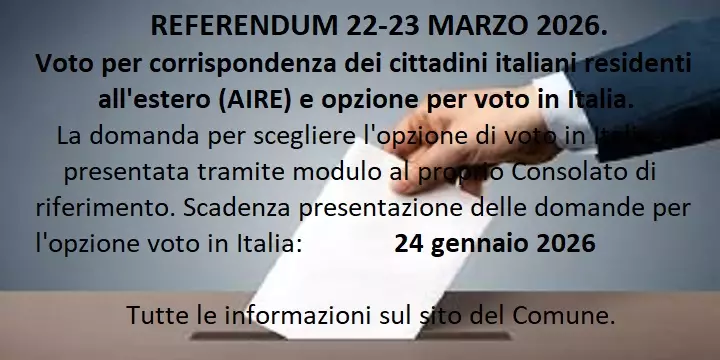 Voto per corrispondenza dei cittadini italiani residenti all'estero (AIRE) e opzione per voto in Italia.