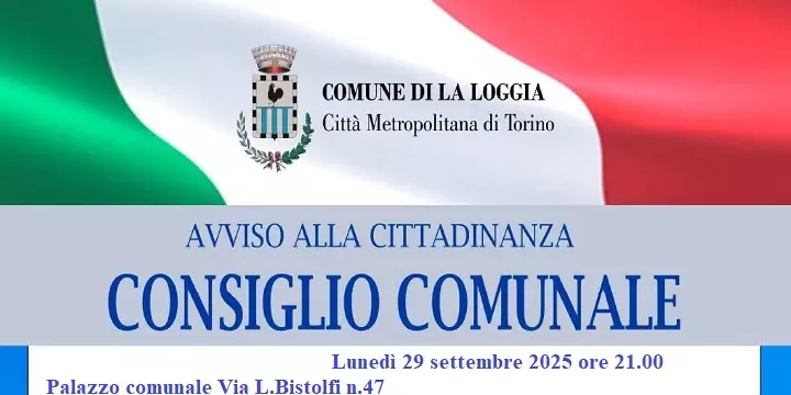 Descrizione Per le ore 21.00 del giorno 29 settembre 2025, presso la sede Comunale, il Consiglio Comunale è convocato in sessione straordinaria, di prima convocazione e in seduta pubblica.Palazzo Comunale Via L.Bistolfi n. 47 - Piano terra.